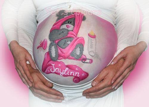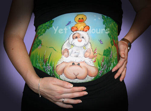 Met huidvriendelijke materialen op waterbasis, wordt er een mooi kunstwerk op je zwangere buik geschminkt.