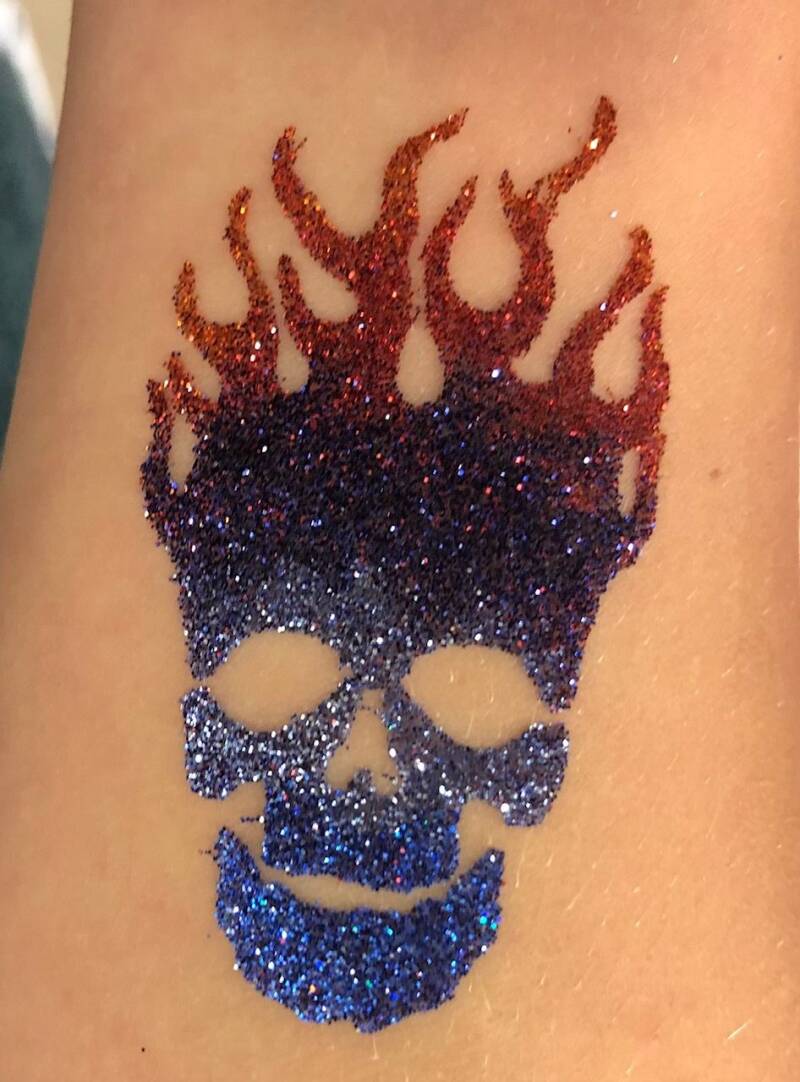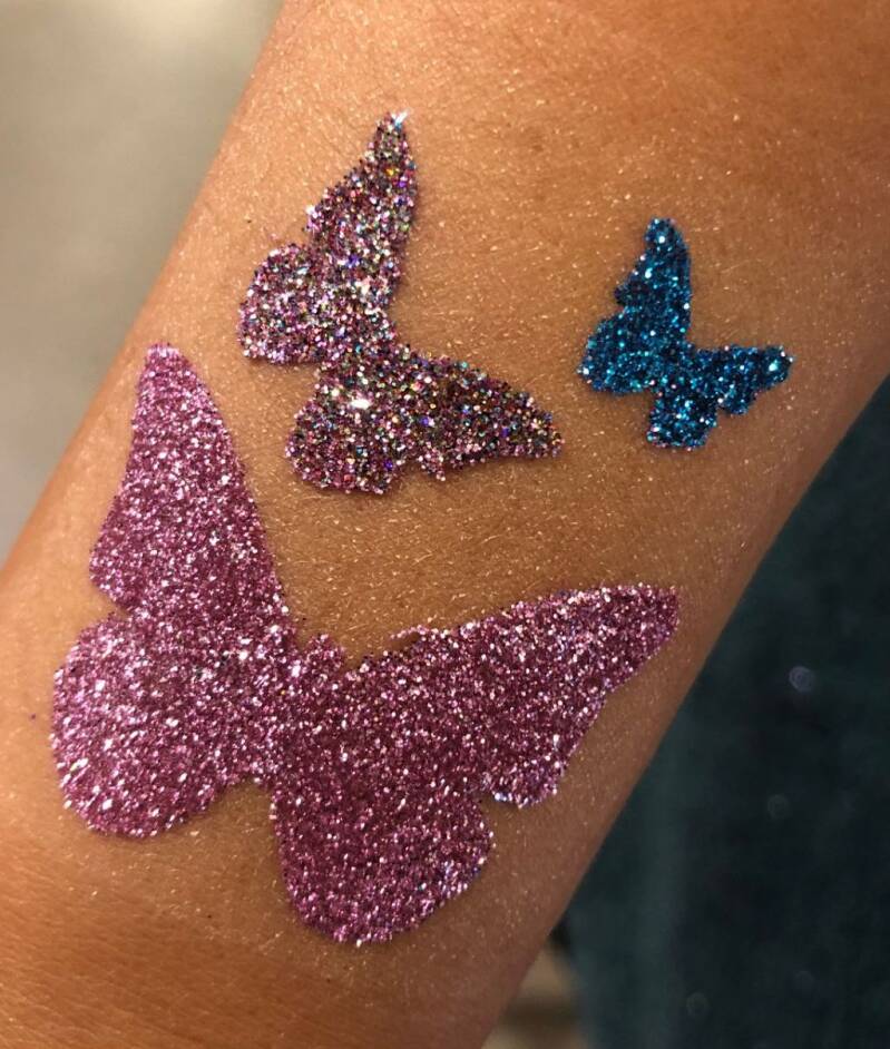 Glittertattoos worden aangebracht met huidvriendelijke lijm en blijven ongeveer 5 dagen zitten.
